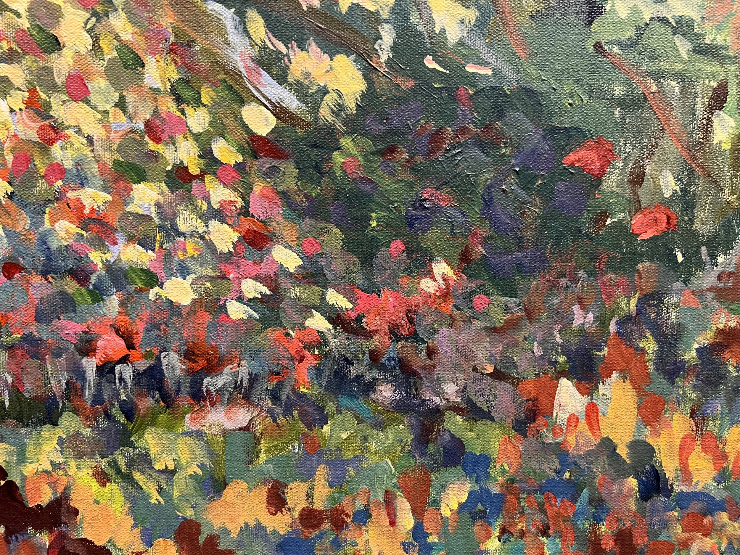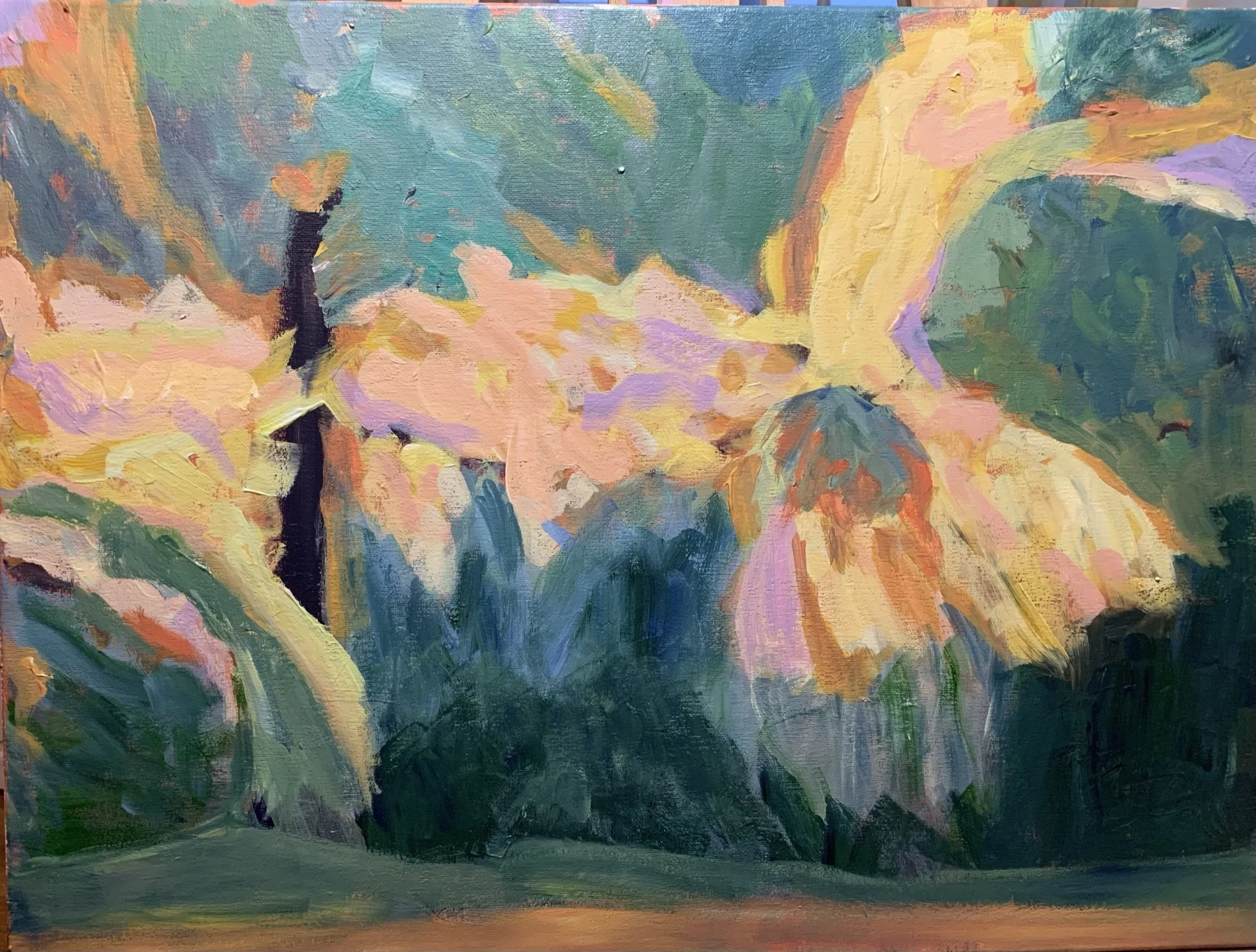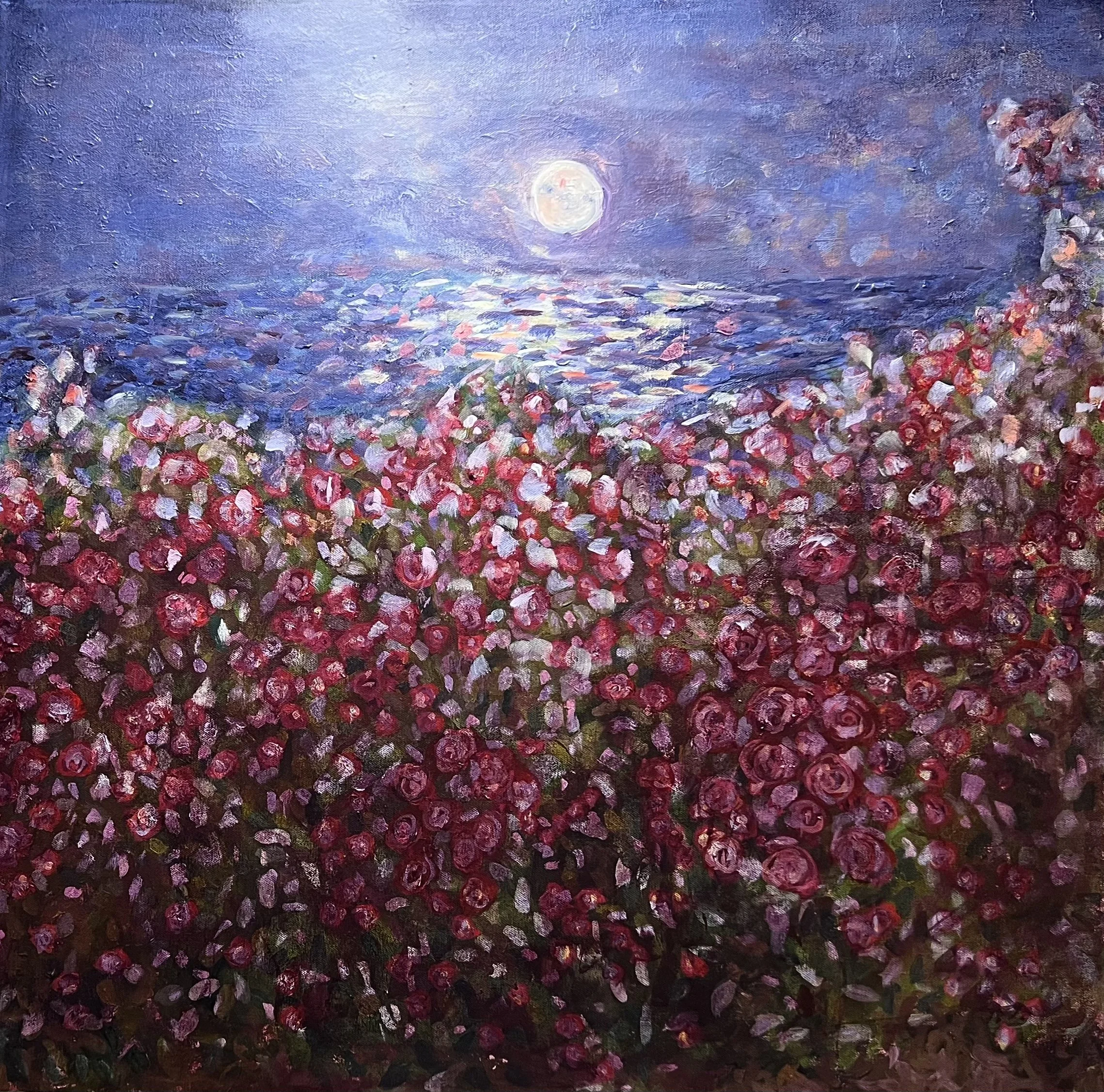 Lately, I’ve been obsessed with roses. I’ve been painting them over and over. Roses are symbolic of so many things. In my paintings. sometimes the focus stays on the rose and sometimes it goes beyond.