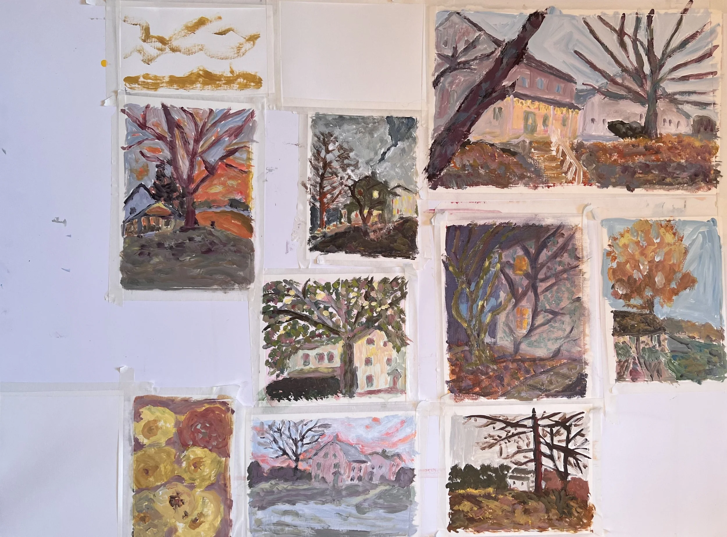 It wasn’t so easy to get my groove back. I painted a board full of sketches of my house in different conditions. It took me three weeks. I was unfocused, and honestly, so were my sketches. They weren’t terrible but they needed clarity. It became clear that I wasn’t clear.